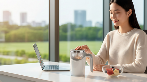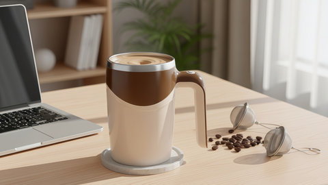 A built-in magnetic stir mechanism blends coffee, tea, cocoa, and powders evenly with a single tap—no spoon, no clumps, just smooth sips on demand.