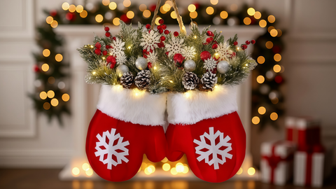 A playful gloves motif and neat proportions (30×27 cm) bring seasonal warmth to doors, walls, stair rails, and trees without overwhelming your décor.