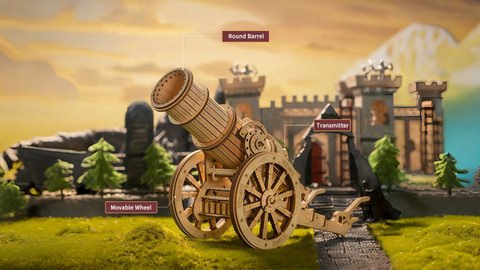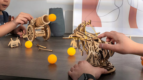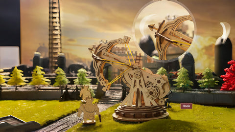 A hands-on 3D wooden siege model kit with precision-cut pieces and satisfying mechanics. Choose KW401 or KW801 for a focused 2–3 hour build that finishes as a statement desk display—part puzzle, part design object