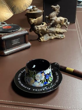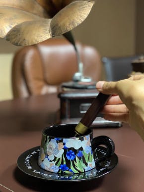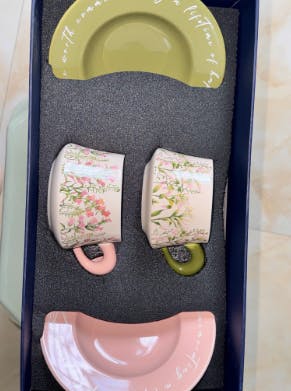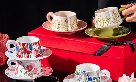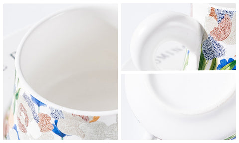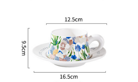 A watercolor iris cup & saucer set that elevates daily coffee. High-fired ceramic is smooth, durable, and safe. The curved handle feels easy in hand, the saucer doubles as a snack plate, and the premium gift box makes gifting effortless.
