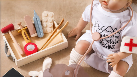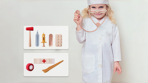 A clean, modern medical set that looks good on a shelf and feels good in hand—made for “play corner” styling without plastic clutter, while still delivering real role-play joy.
