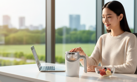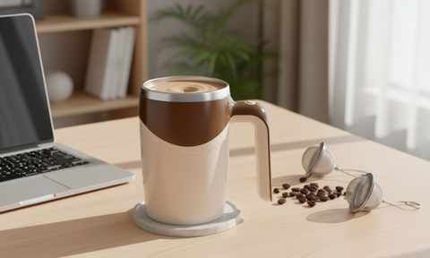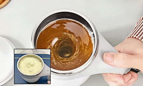 A built-in magnetic stir mechanism blends coffee, tea, cocoa, and powders evenly with a single tap—no spoon, no clumps, just smooth sips on demand.