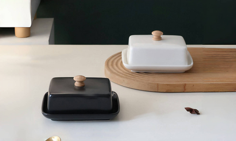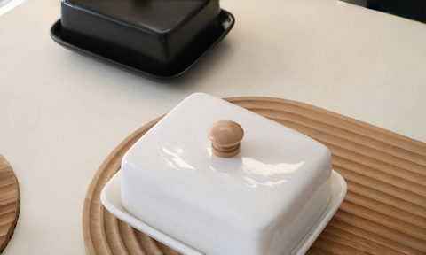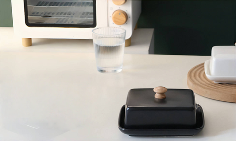 Use it as a butter keeper, cheese server, or snack tray. The dish is microwave-safe for quick softening or warming (remove any wooden lid), and the glossy glaze rinses clean with a light wipe—no fuss upkeep.