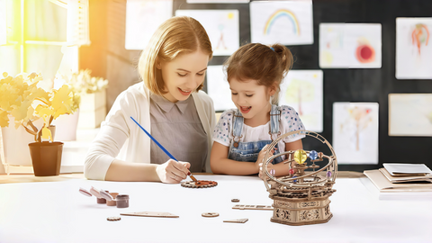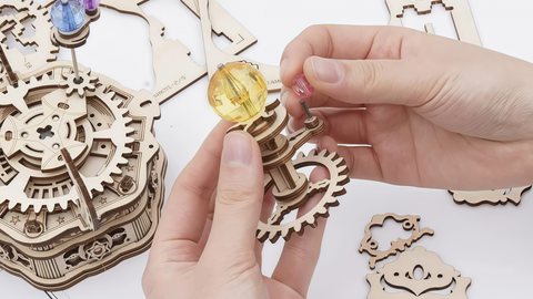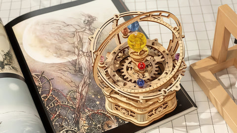 Rotating Starry Night Orrery Mechanical Music Box 3D Wooden Puzzle (84pcs)