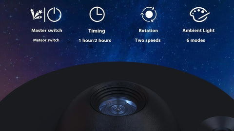 A built-in silent motor mimics the slow rotation of the night sky with two speeds. Add the dynamic meteor shower effect for that “shooting star” moment—without noisy distractions.